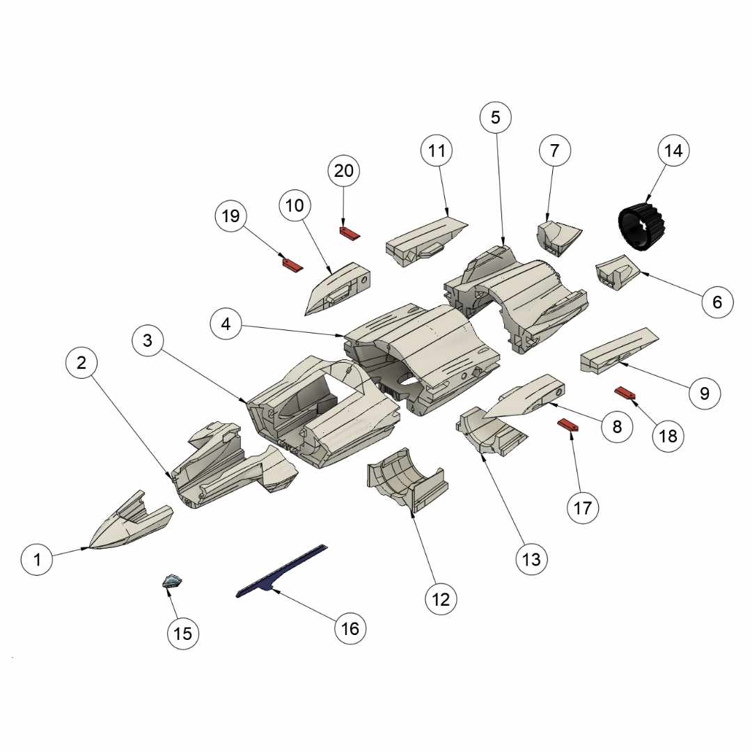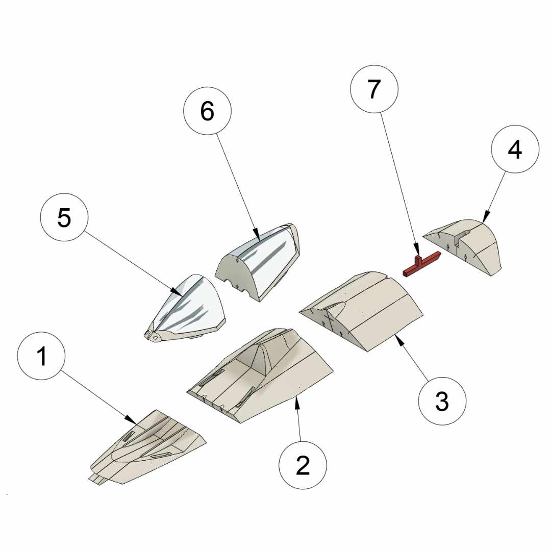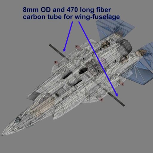 - 1 x 8mm OD and with 470mm long fiber carbon tube as fuselage-wing spar.