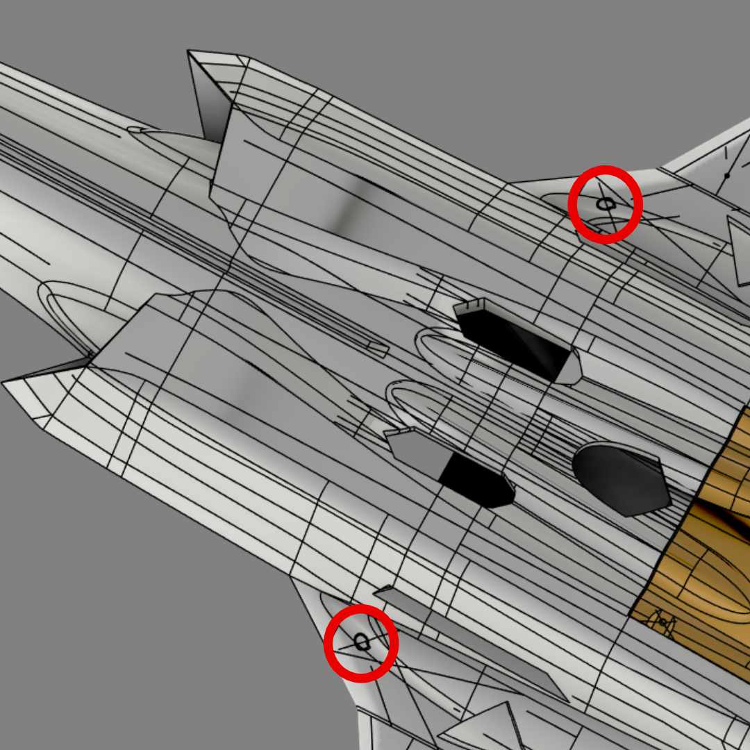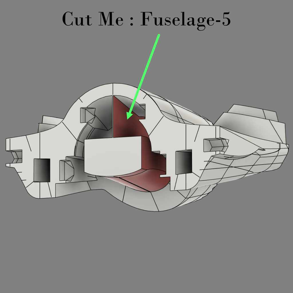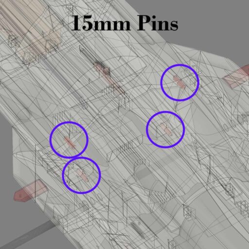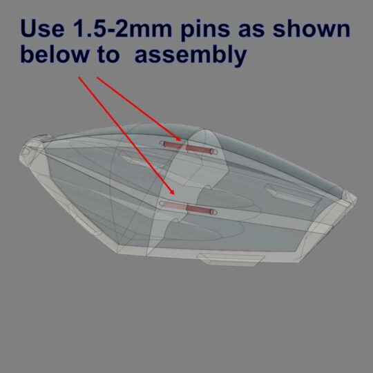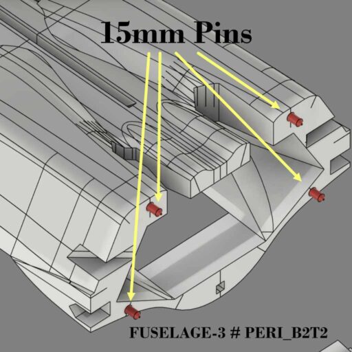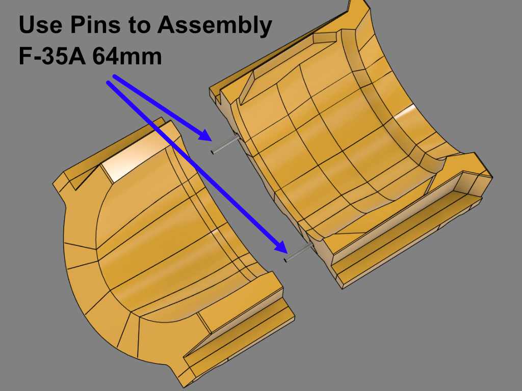 To glue FUSELAGE-3 and FUSELAGE-4, need to use 4 x 15mm pins as shown below. The pin STL files can be found under : “1. STLs F-35 64mm\SUPPORT v1.0\PINS – please use 15mm PIN”.