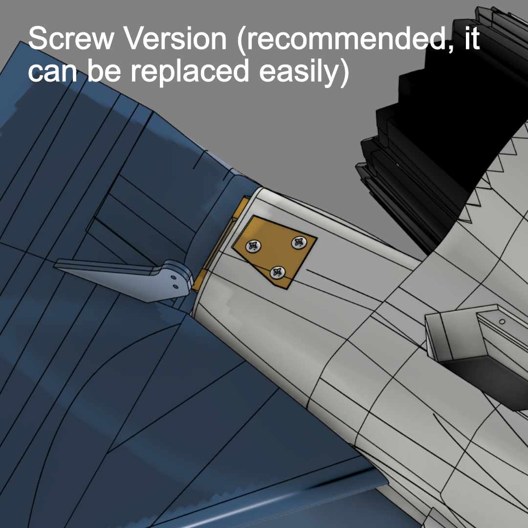 It is recommended to use screws. When the event elevator broken due to hard landing for example, we still can easily replace the broken horizontal stabilizer with the new one.