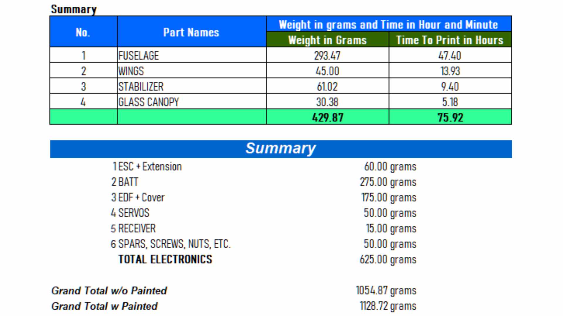 Please print the model using LW-PLA with no-infill or we call it “Digital Balsa” type of print. Make sure you use a powerful EDF motor that can have static thrust stronger than the model AUW itself (having more than 1 thrust and AUW ratio).