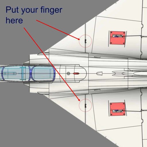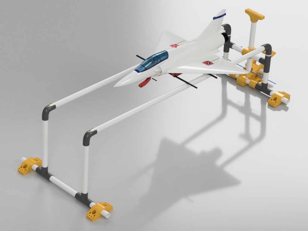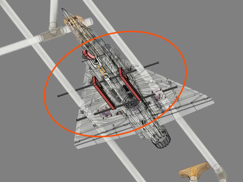 If you plan to launch the model with our own catapult launcher, please print the part shown on the right side. All parts are located under “1. STLs M2000D 64mm\SUPPORT v1.0\CATAPULT LAUNCHER”.