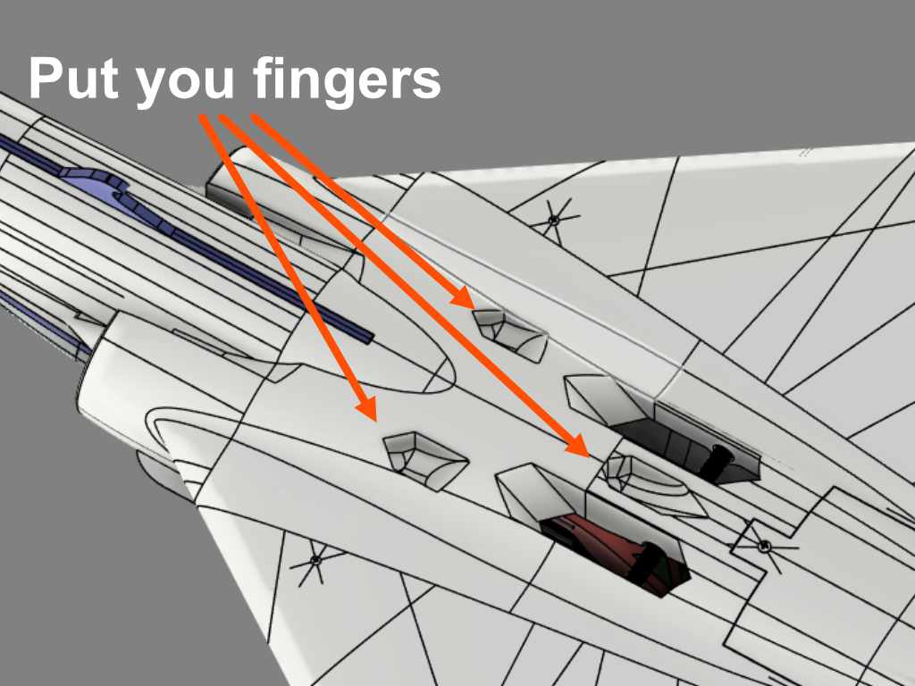If you choose to launch by throwing, please put your fingers as shown in the following pictures.