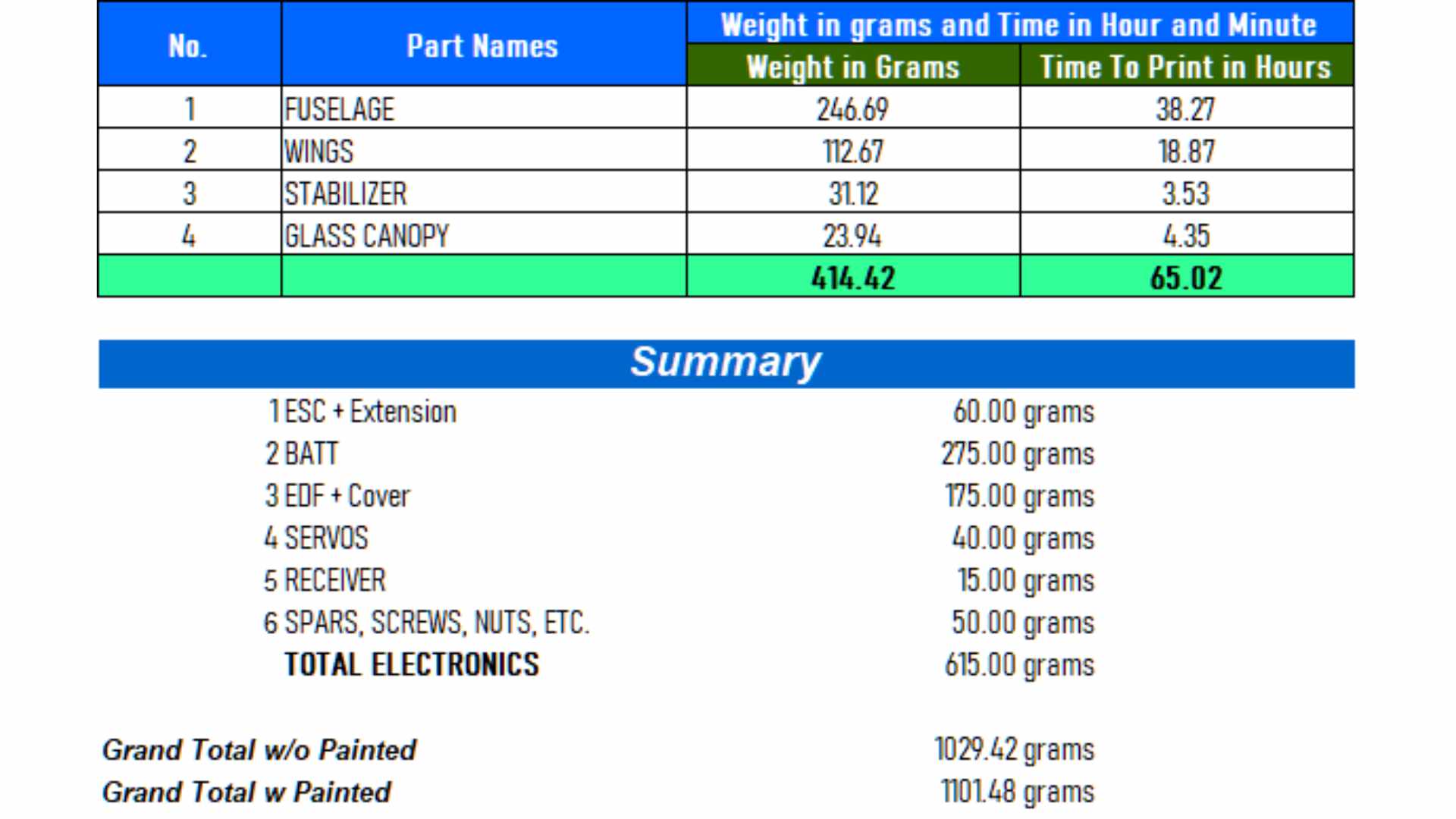 Please print the model using LW-PLA with no-infill or we call it “Digital Balsa” type of print. Make sure you use a powerful EDF motor that can have static thrust stronger than the model AUW itself (having more than 1 thrust and AUW ratio).