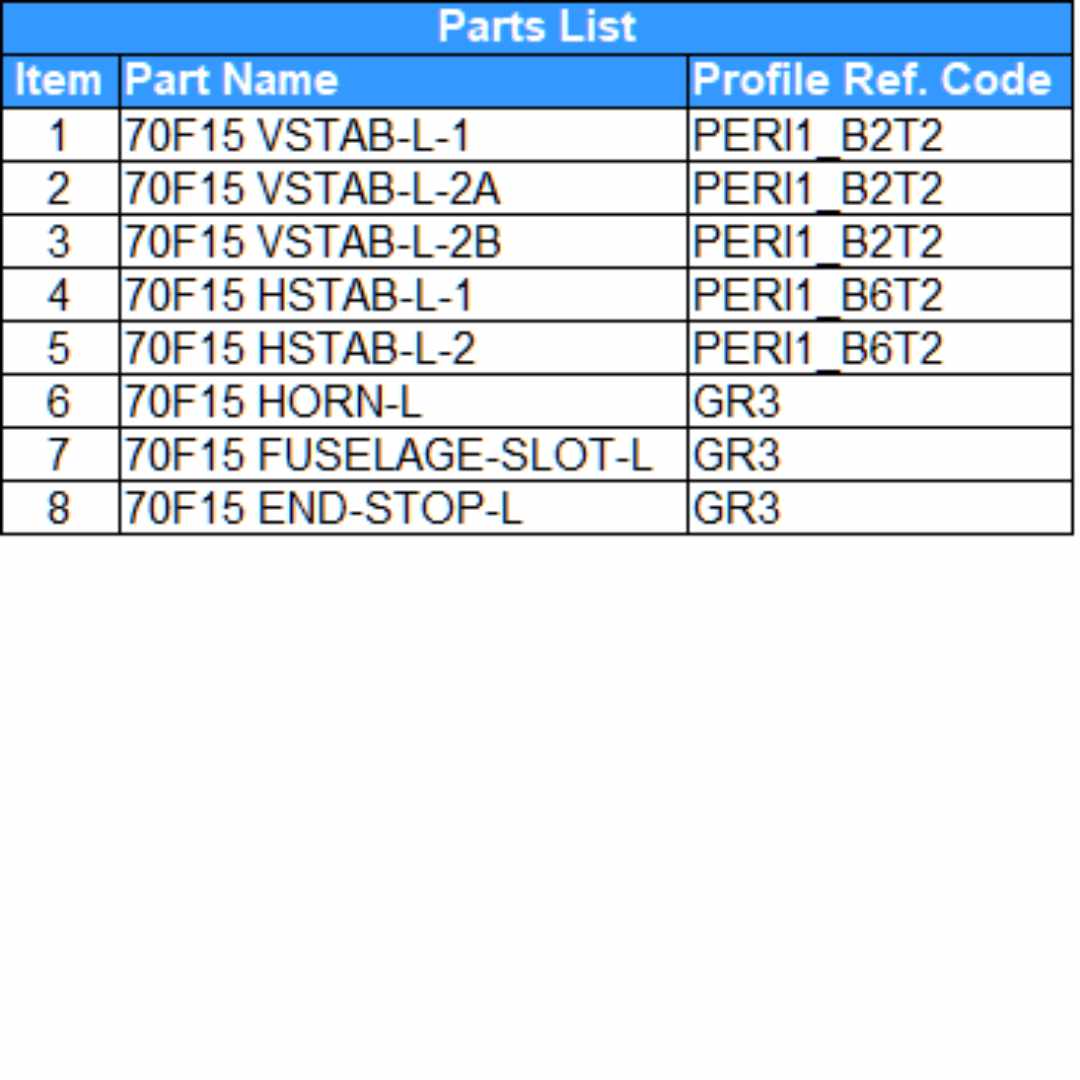 F-15 70mm Wings AssemblyModel Part Table and Diagram Assembly Videos or Images*) Illustration Image and/or Videos may be used (not from actual model)