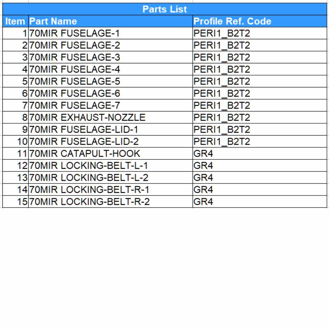 Model Part Table and Diagram